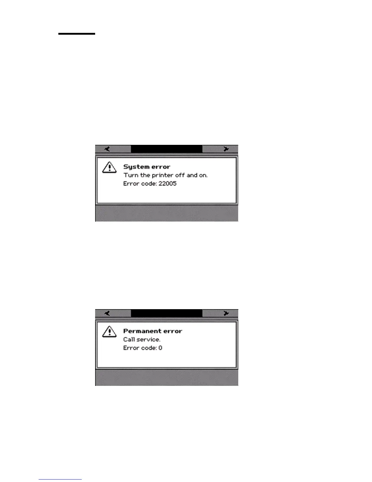 2 If a system error occurs, you must turn the printer off and on.