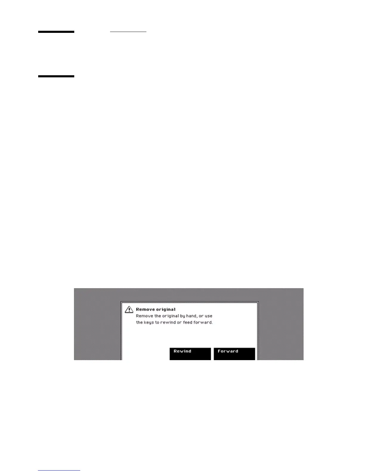 If an original jam occurs, the screen displays an error message. If such an