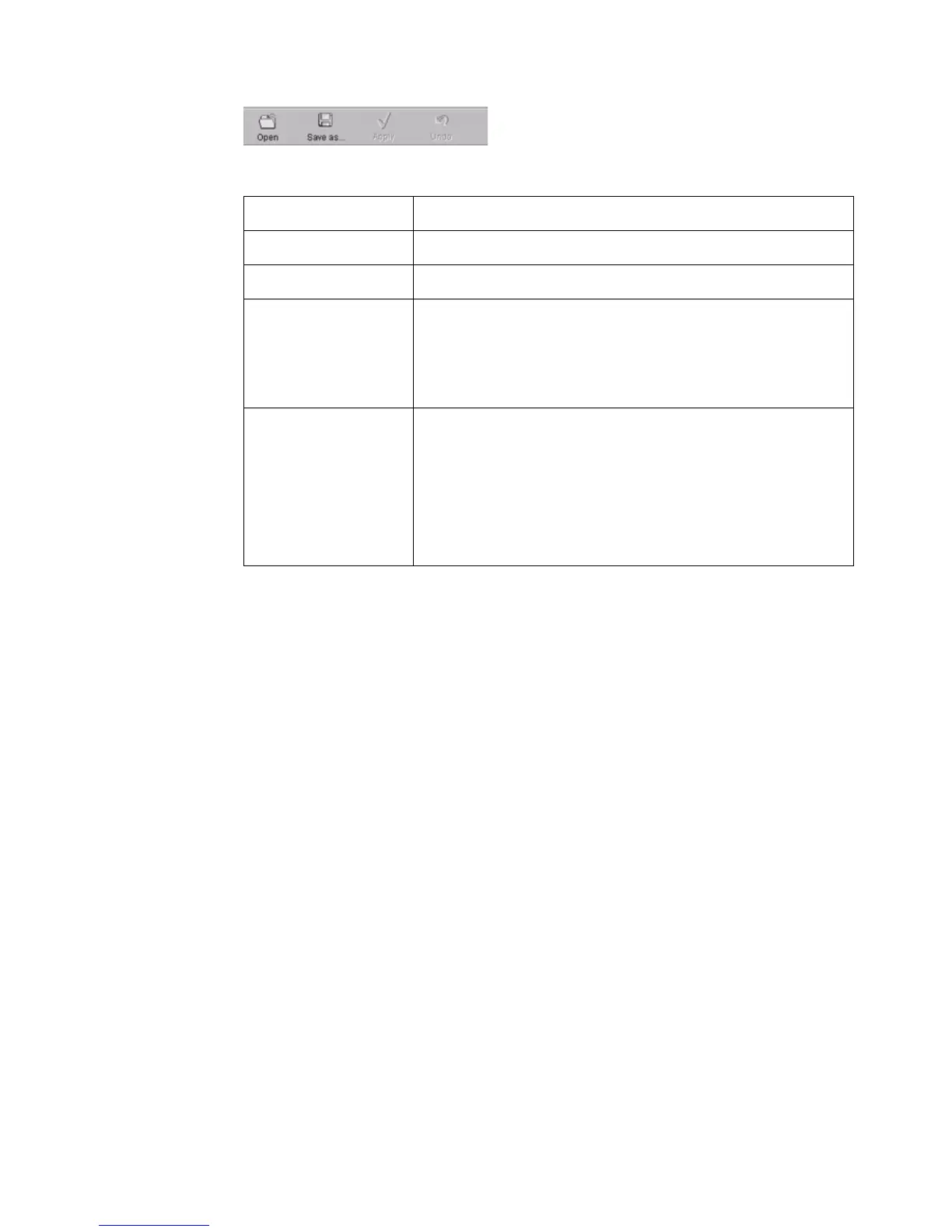 'Open' Open a file that contains saved settings.