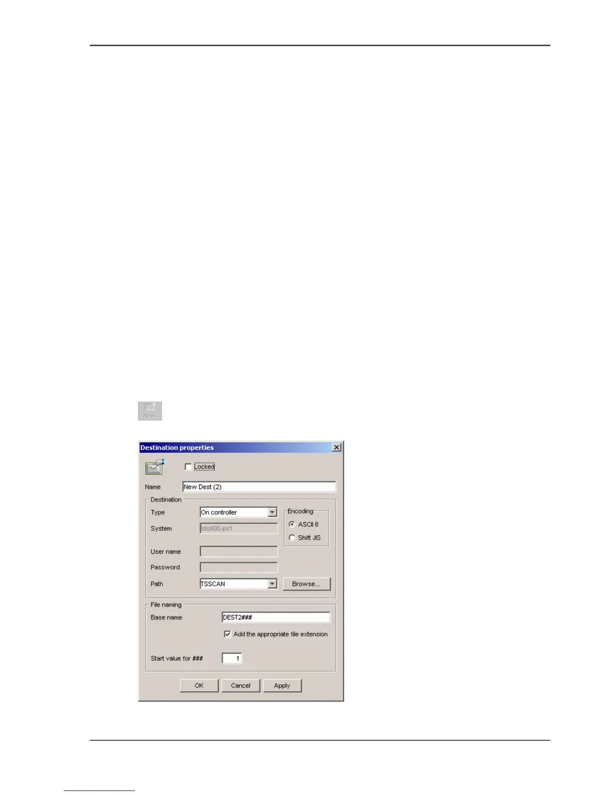 The 'Destination properties' dialog box opens.