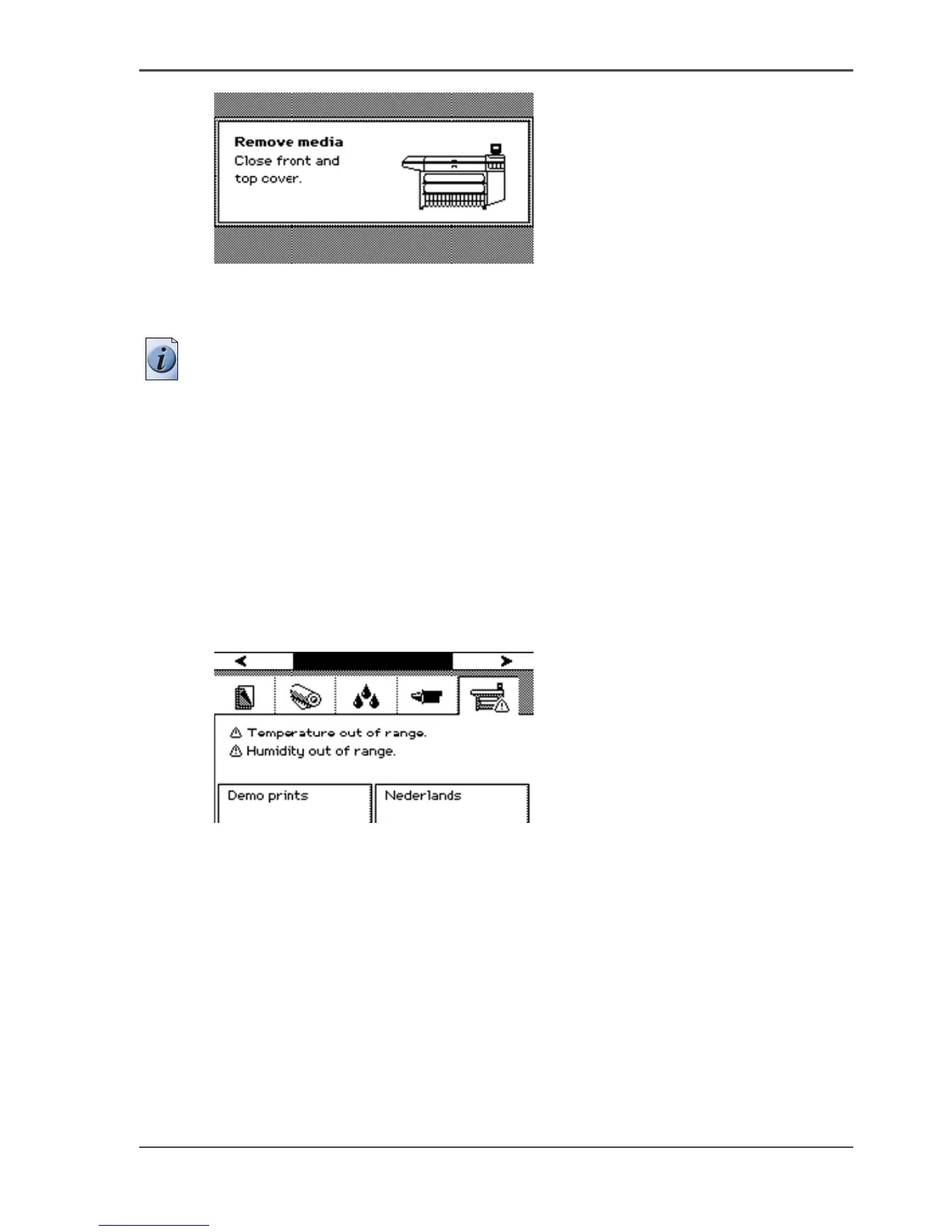 Note: If you remove the media from the front of the printer, there is a risk of ink