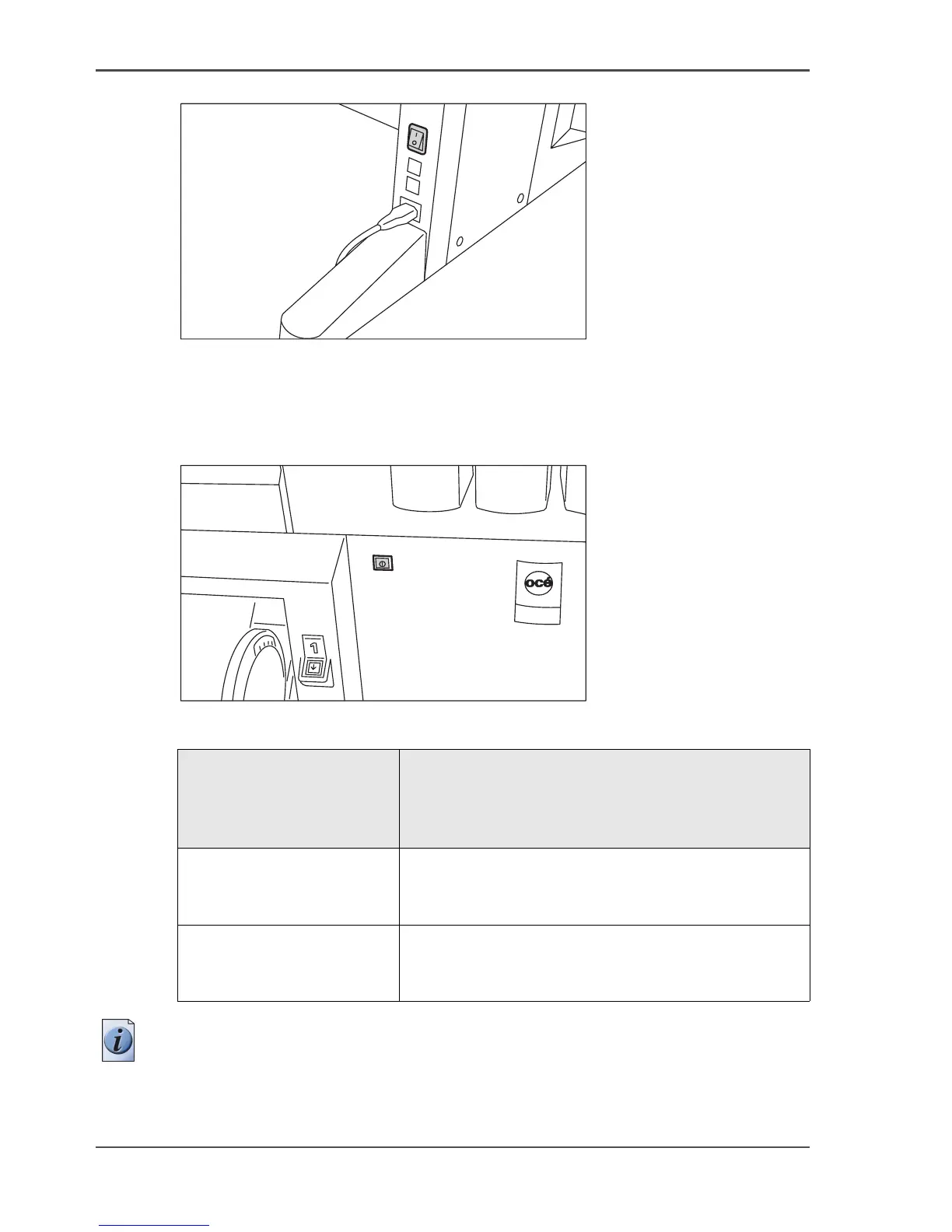 Turn on and off the Océ TCS500 printer and the Océ Power Logic® Controller