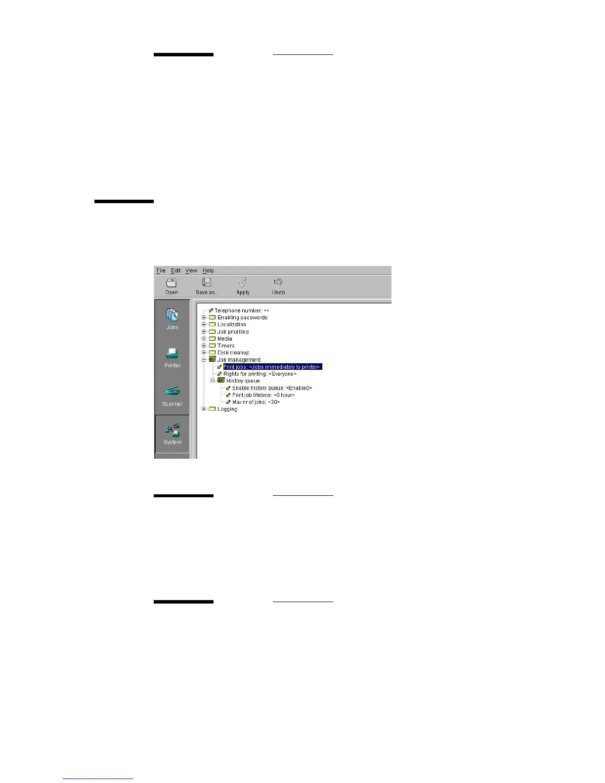 Menu path System - Job management - Print jobs