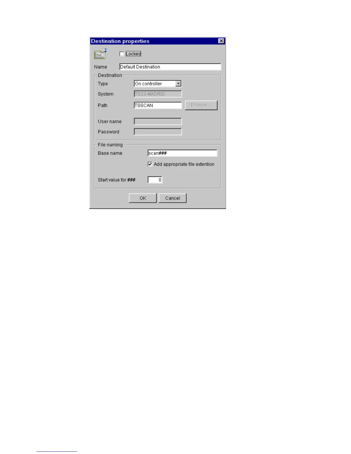 7 Enter, if required, a user name for the network destination in the ‘User name’