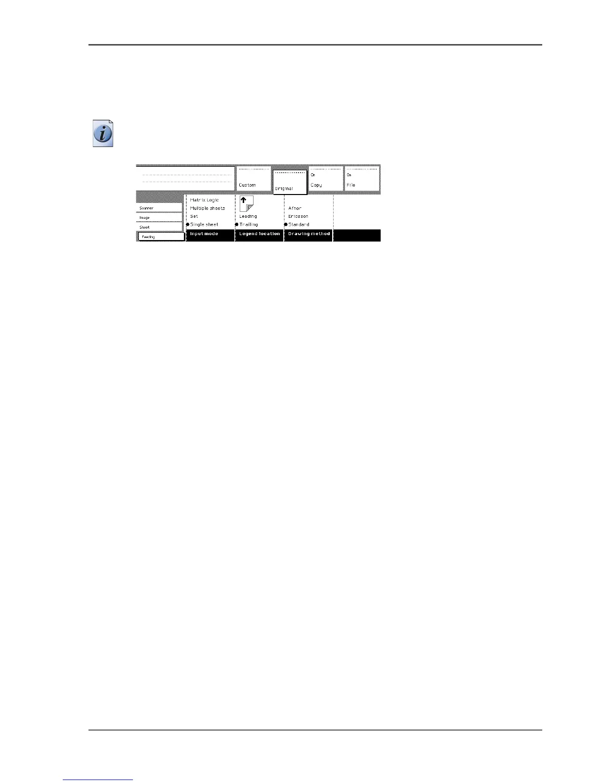 1. Open the 'Original' section on the scanner operator panel.