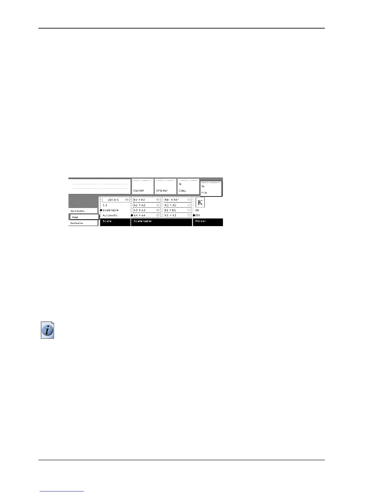 Use the scale table to choose an automatic reduction or enlargement conversion of