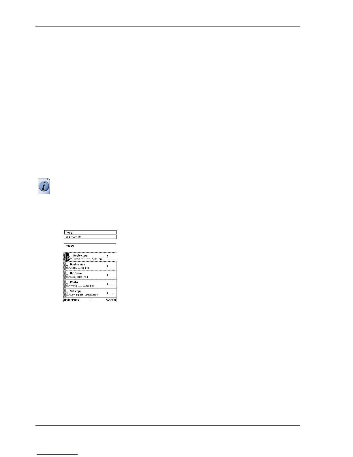 When you turn the Océ TDS700 on or when you select 'Copy', the scanner operator