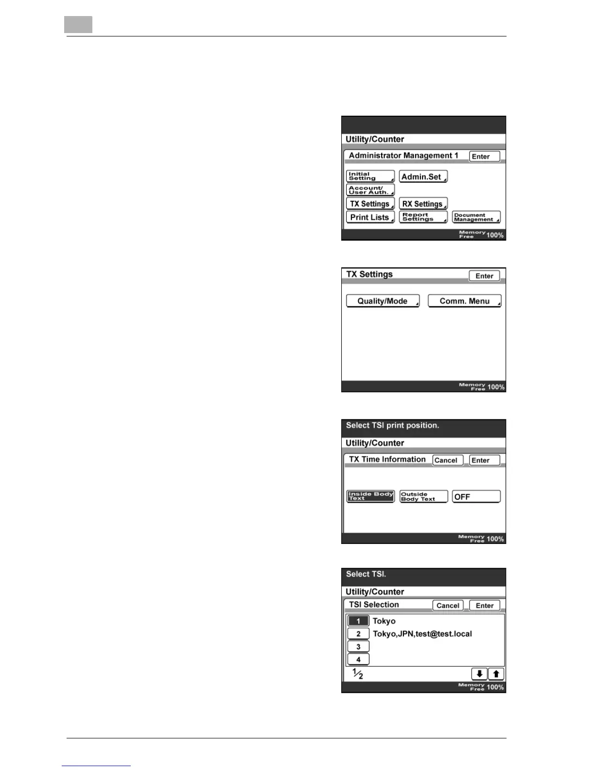 1 Enter Administrator mode, and then touch [Admin. 1].