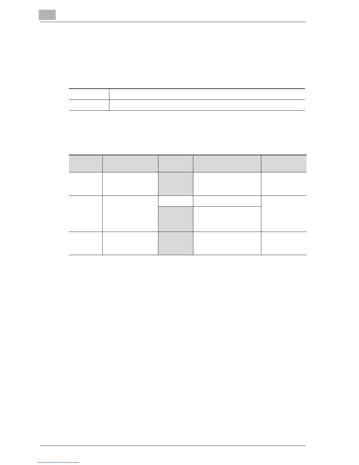 The shaded cells represent the factory settings. The page numbers on the