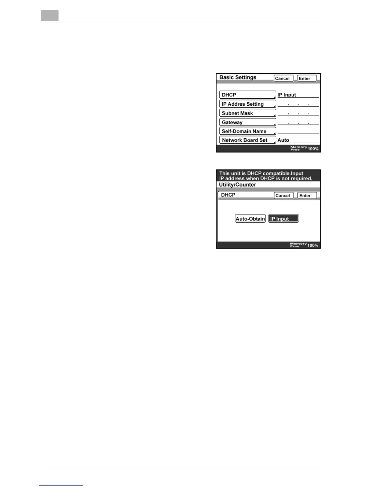 – When [IP Input] was selected,