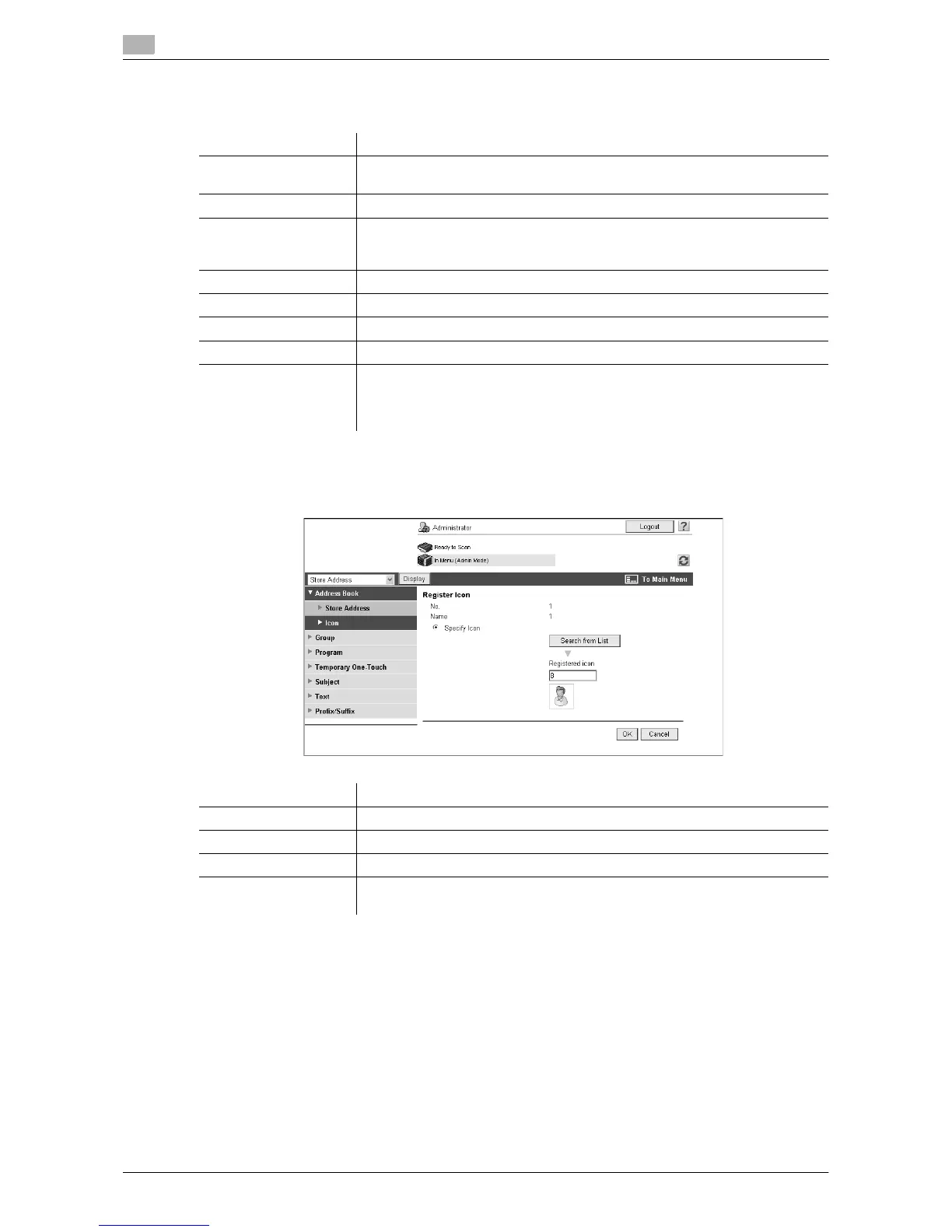 In the administrator mode of Web Connection, select [Store Address]ö[Address Book]ö[Icon]ö[Edit].