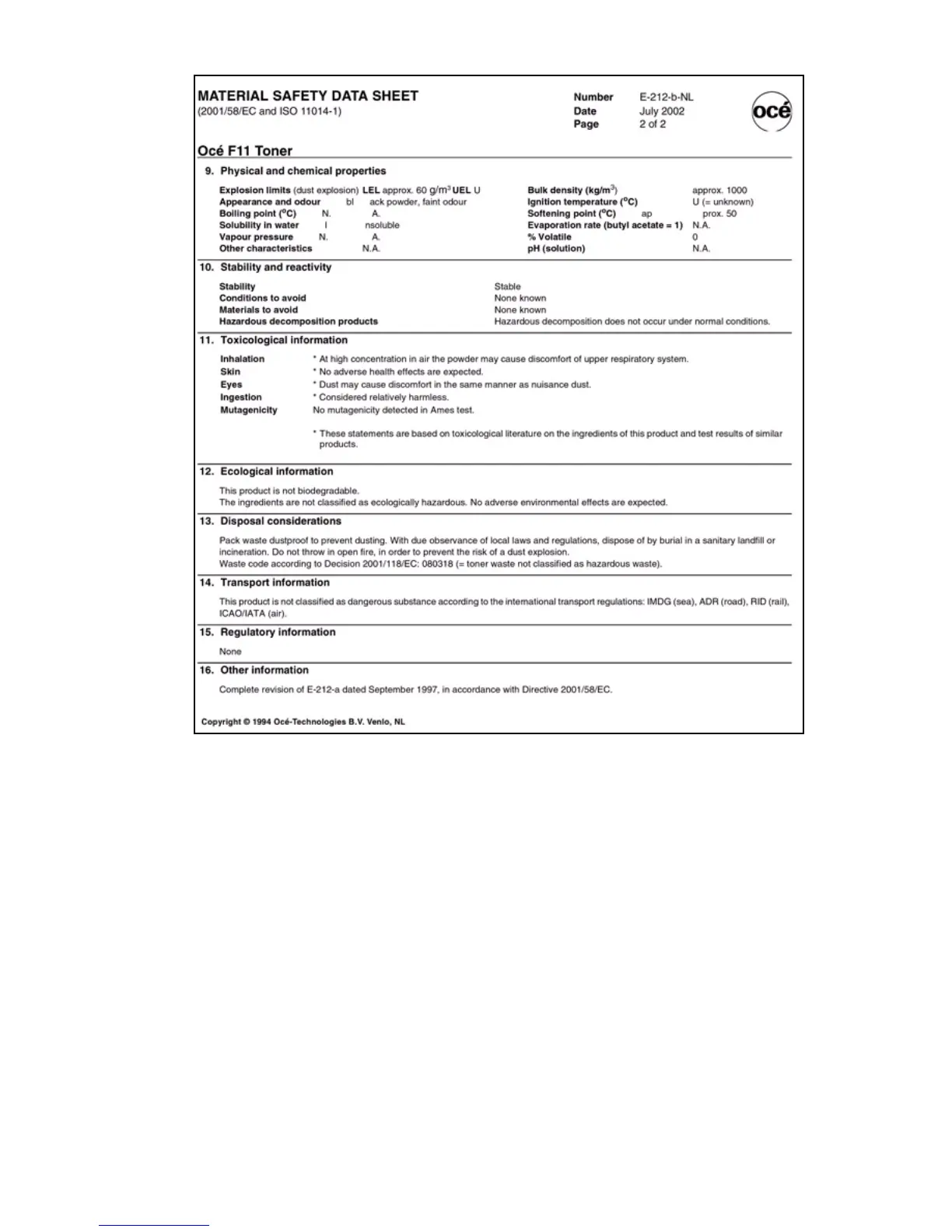 Haftungsausschlusserklärung (siehe ‘Sicherheitsdatenblätter’ auf Seite 39)