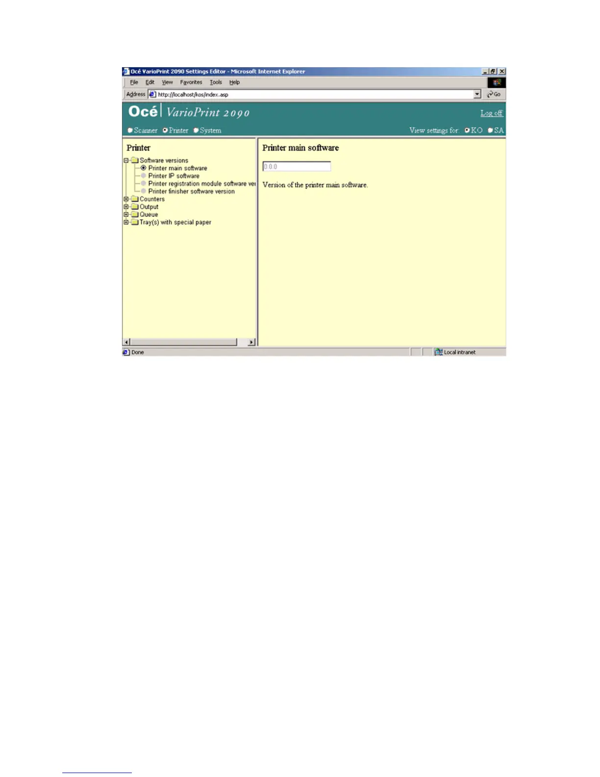 Select 'Printer' in the title bar of the Océ VarioPrint 2090 Settings Editor.