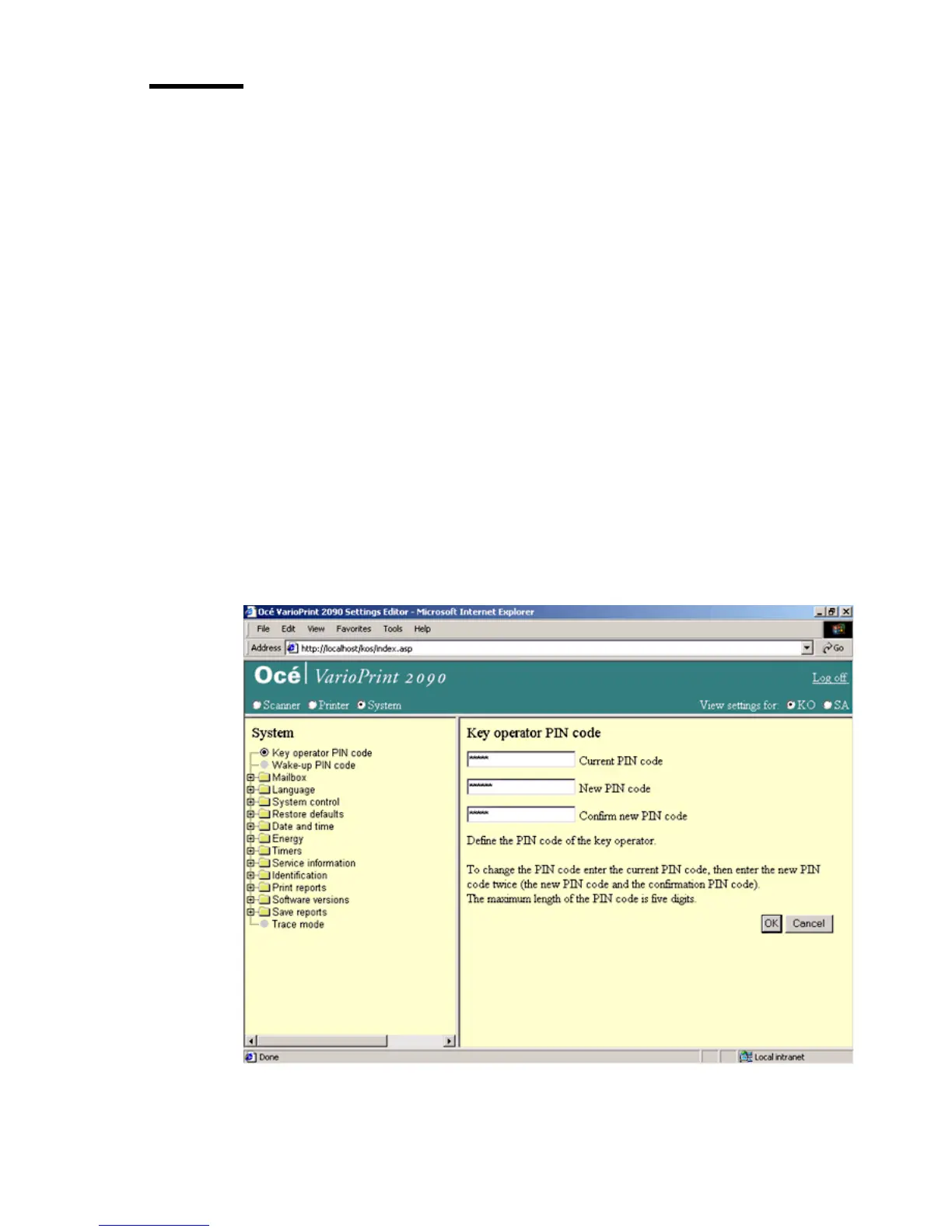 operator mode (see ‘Access the Océ VarioPrint 2090 Settings Editor in key