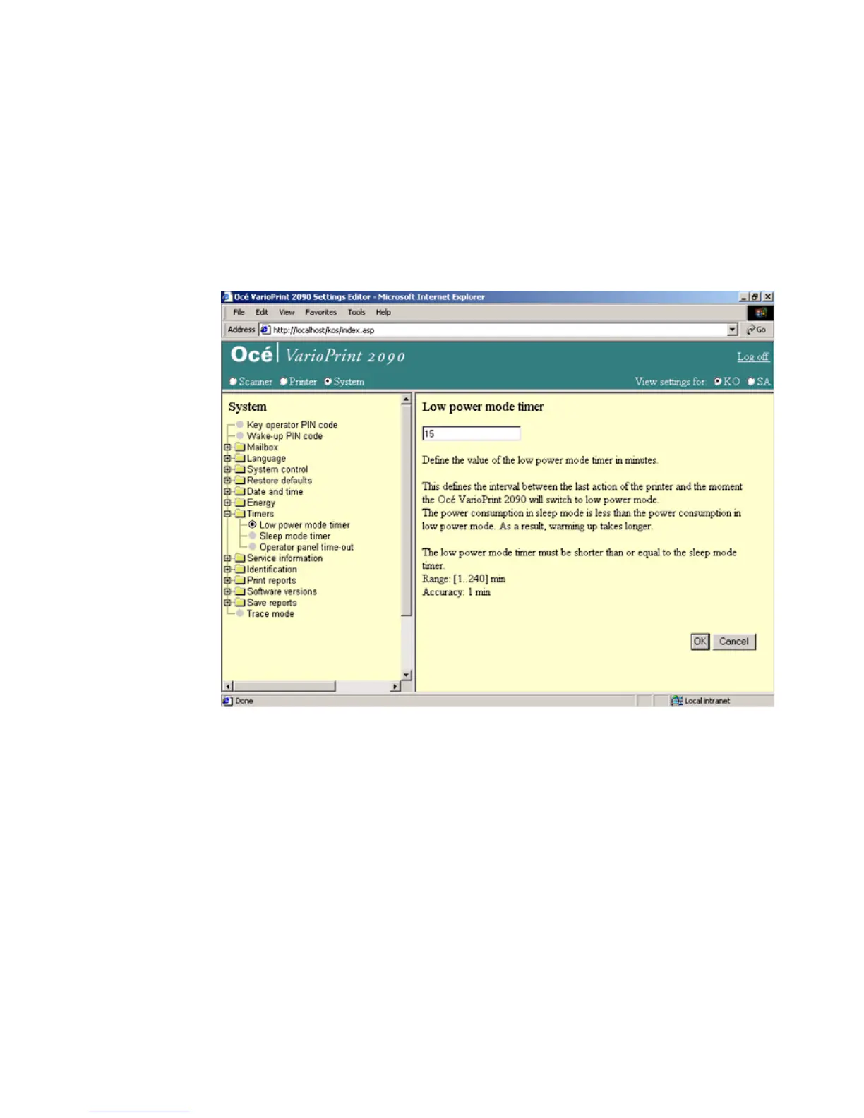 operator mode (see ‘Access the Océ VarioPrint 2090 Settings Editor in key