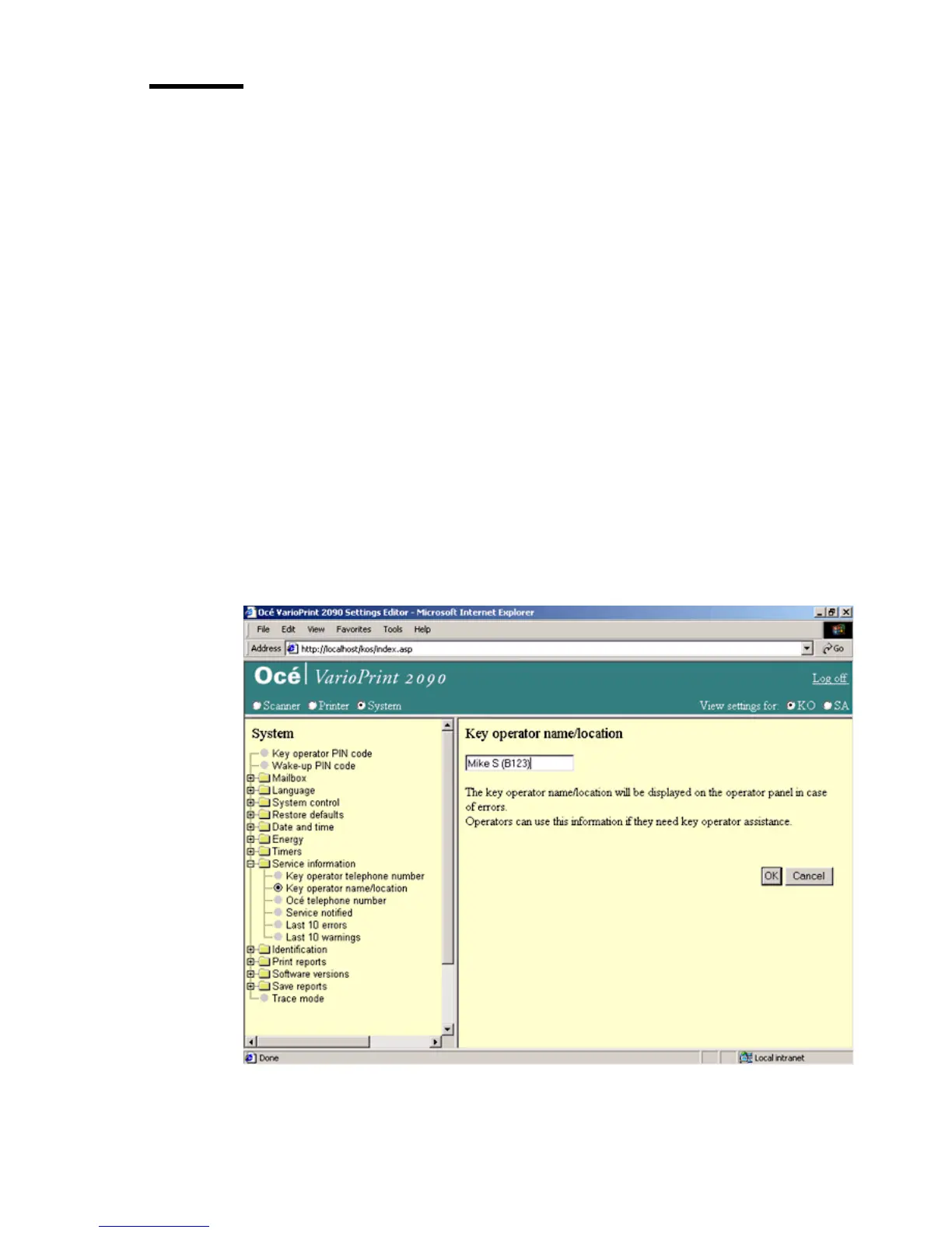 operator mode (see ‘Access the Océ VarioPrint 2090 Settings Editor in key