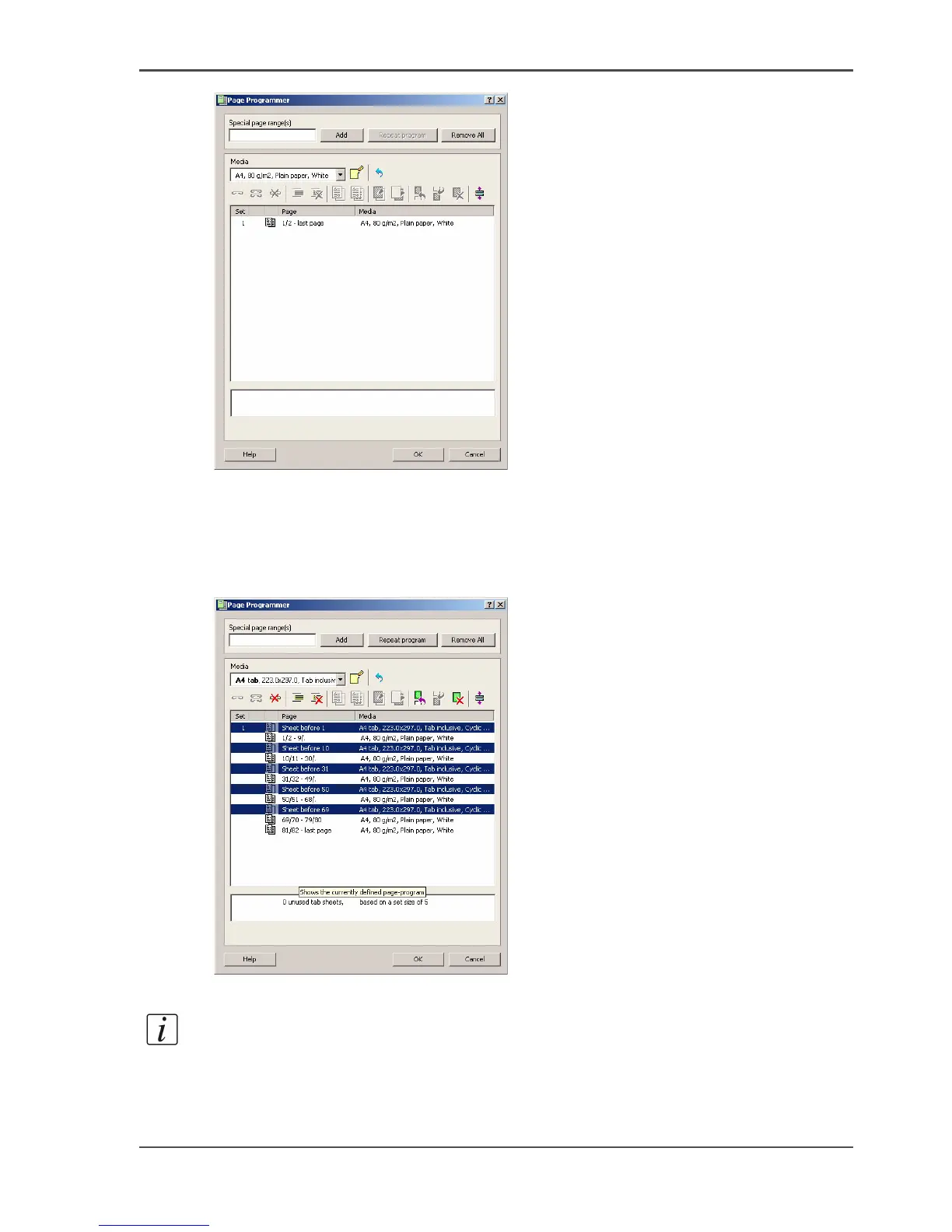 [44] A page program with tab sheets