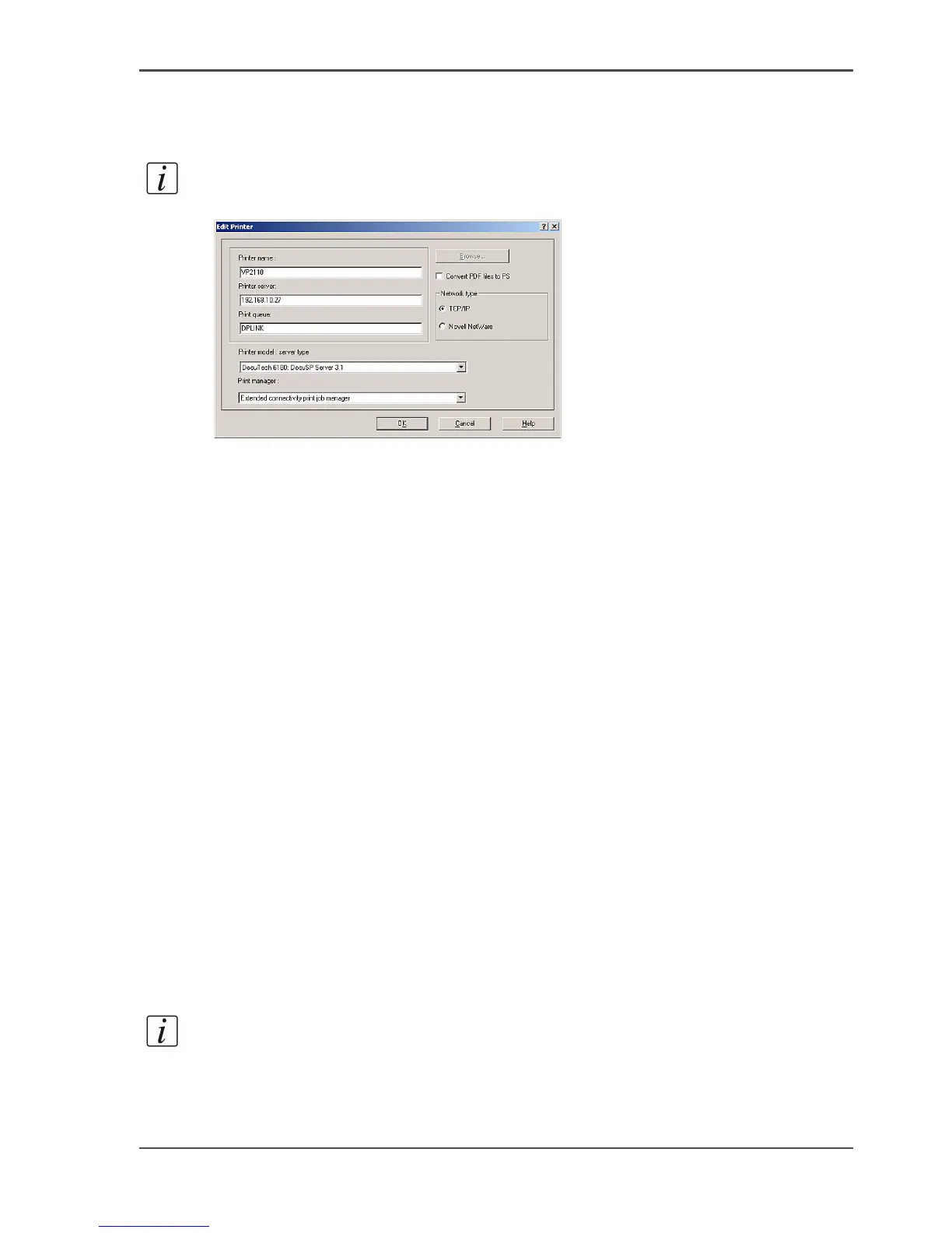 9. Select 'Extended connectivity print job manager' in the 'Print manager' box.