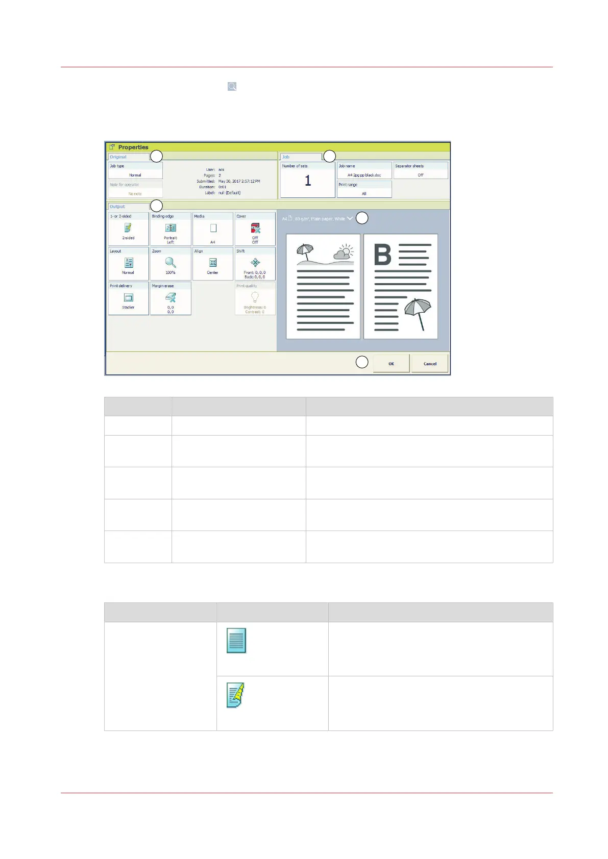 Description of the print job settings that you can change on the control panel