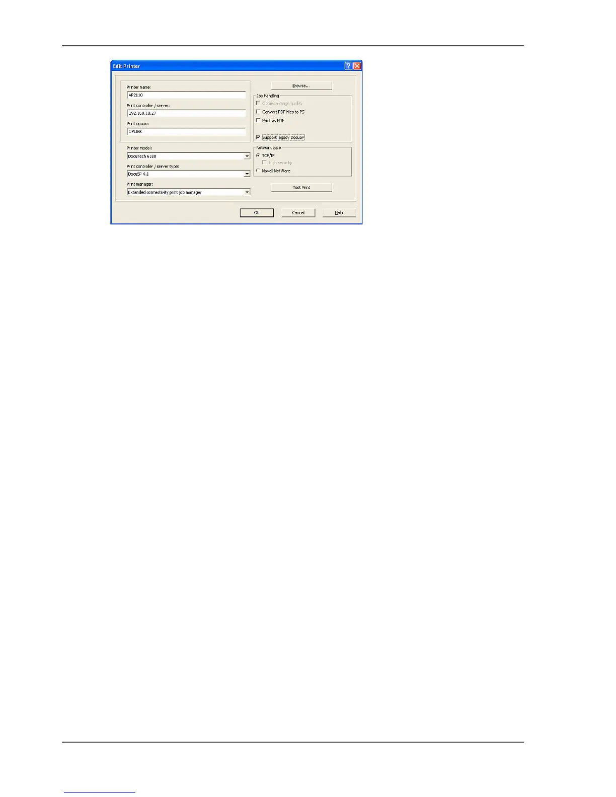 9. Select 'Extended connectivity print job manager' in the 'Print manager' box.