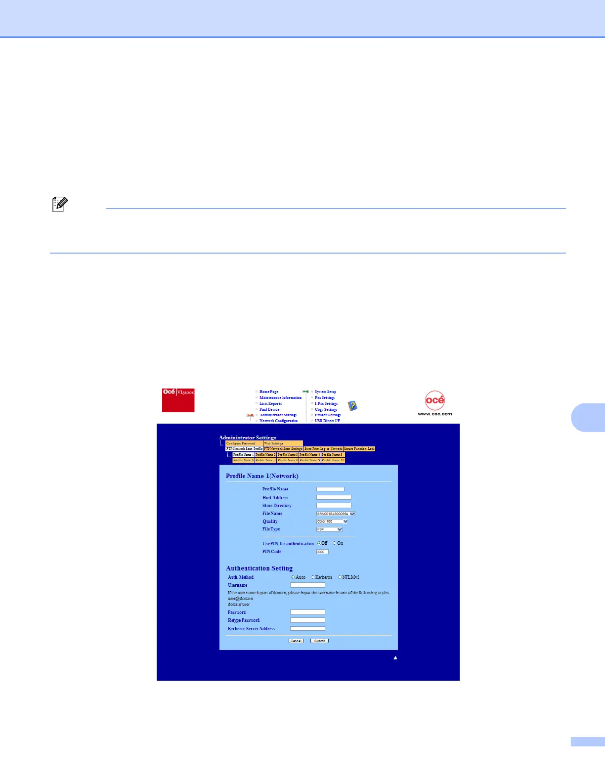 c Click FTP/Network Scan Profile on Administrator Settings page.