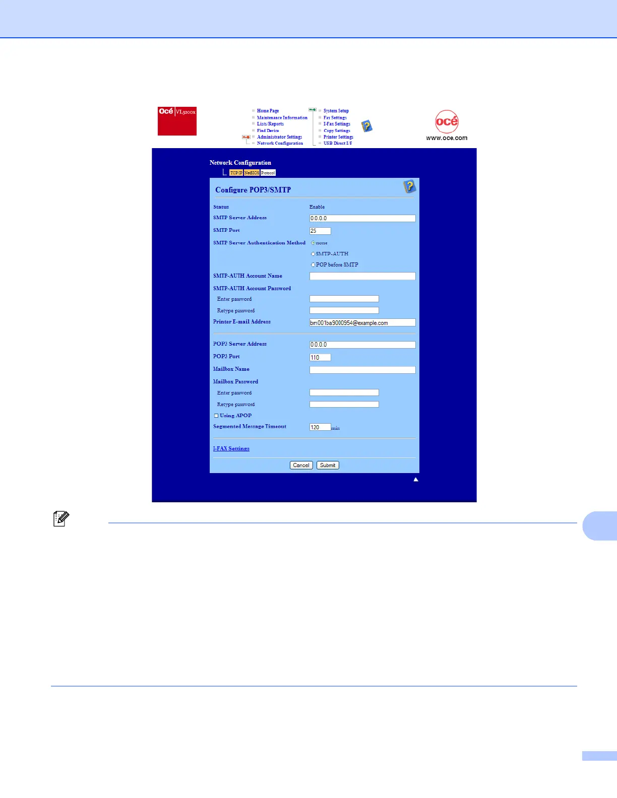 g You can configure the POP3/SMTP settings on this page.