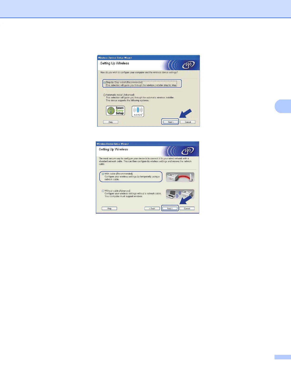 g Choose With cable (Recommended) and then click Next.