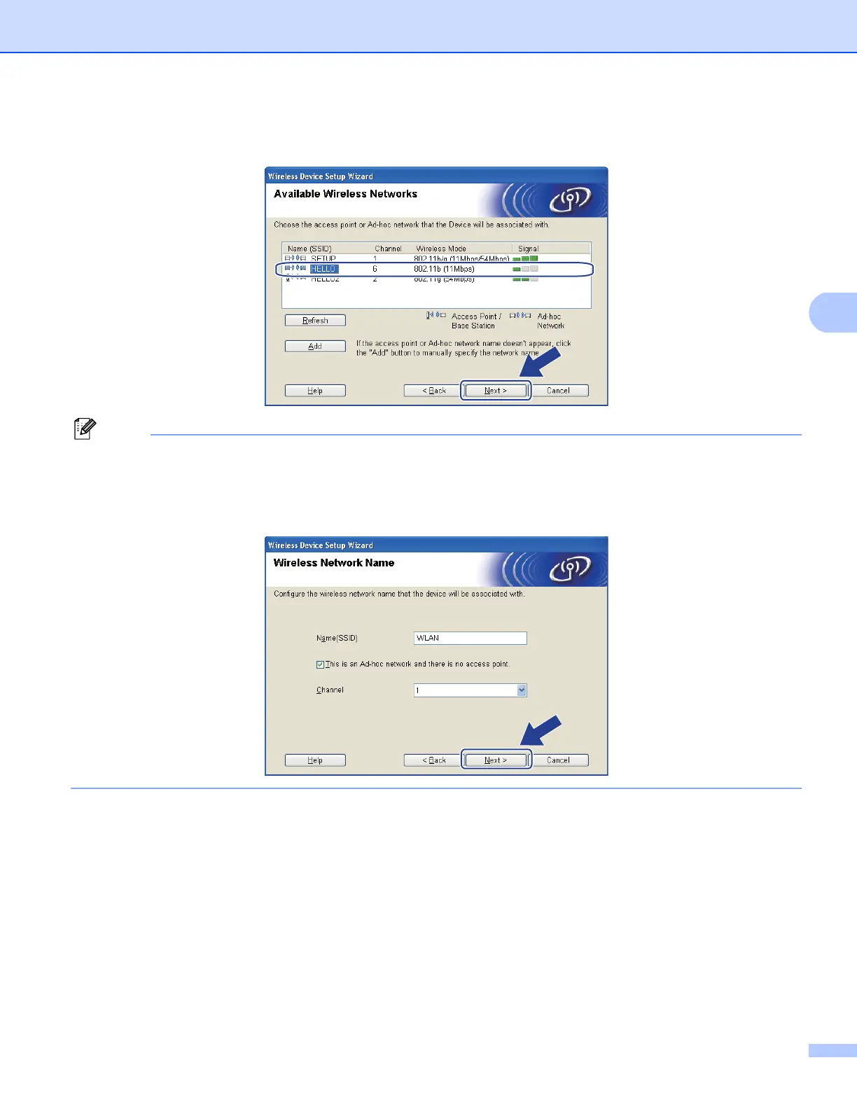 m The wizard will search for wireless networks available from your machine. Choose the Ad-hoc network