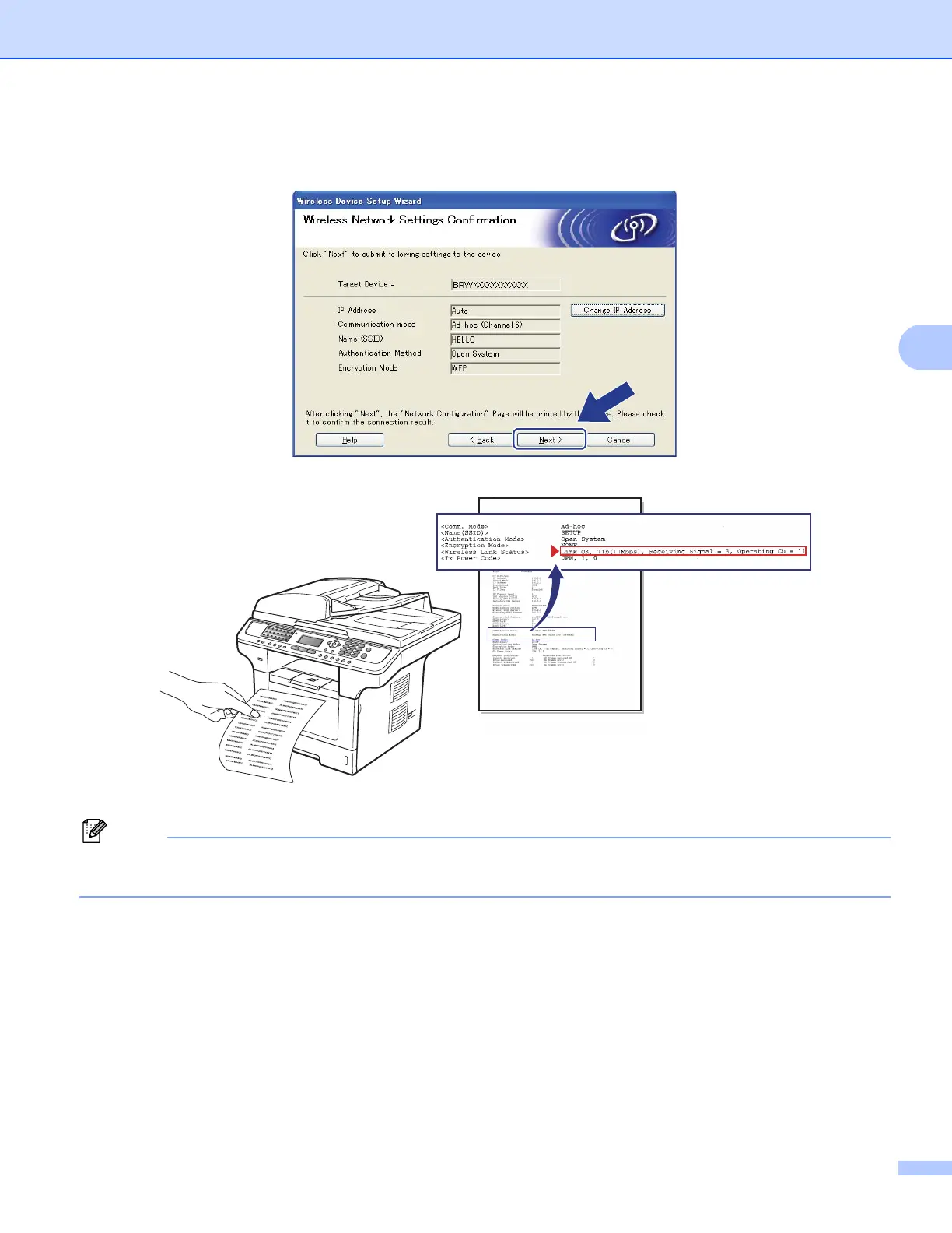 p Click Next. The settings will be sent to your machine. The settings will remain unchanged if you click