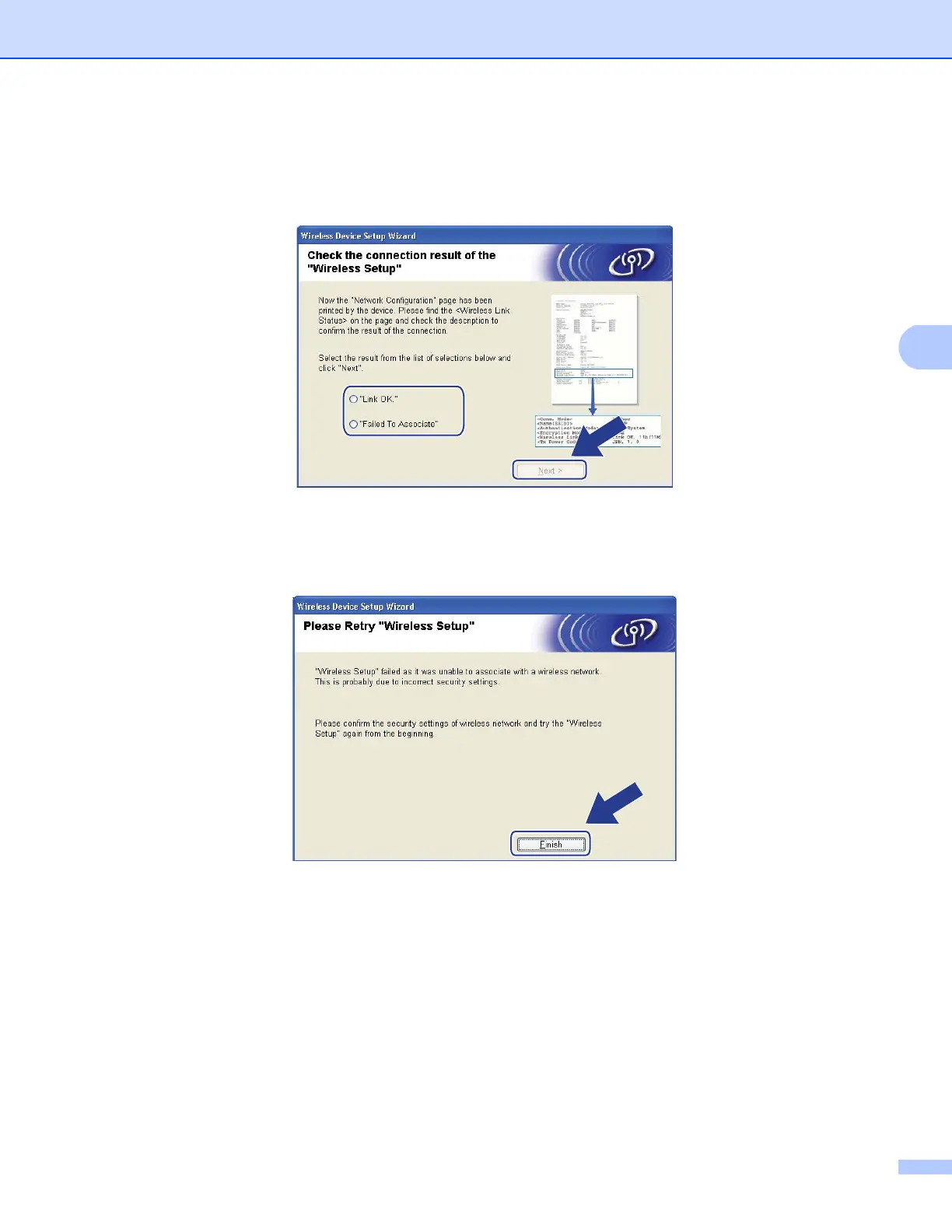 r Click Finish. Wireless setup was unable to associate with a wireless network. This is probably due to