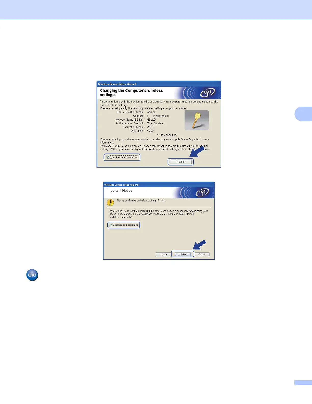 t Check the box after you confirm that you have completed the wireless settings, and then click Finish.