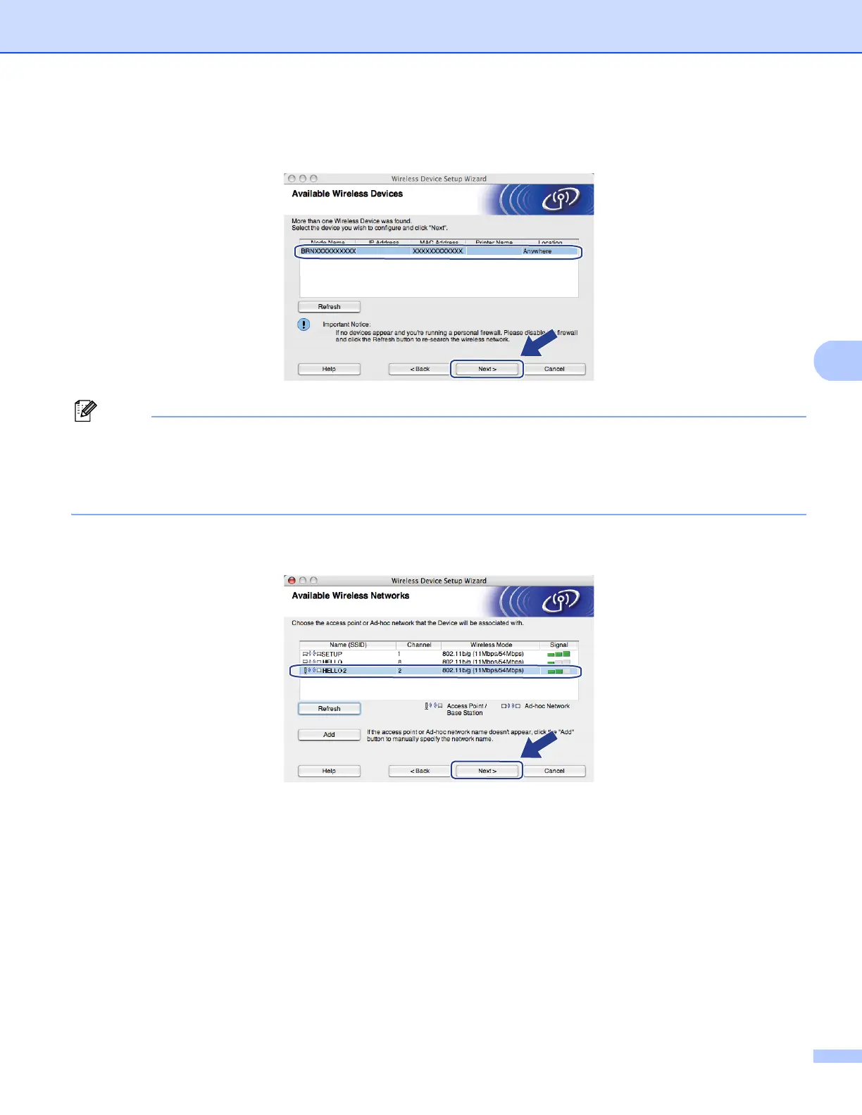 i Choose the machine you wish to configure, and click Next. If the list is blank, check if the access point