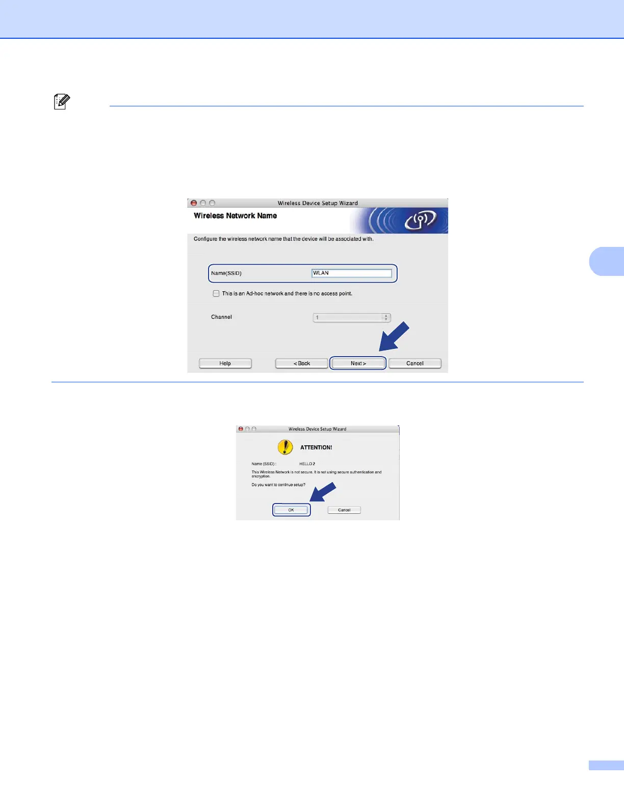 • "SETUP" is the default SSID of the machine. Do not choose this SSID.