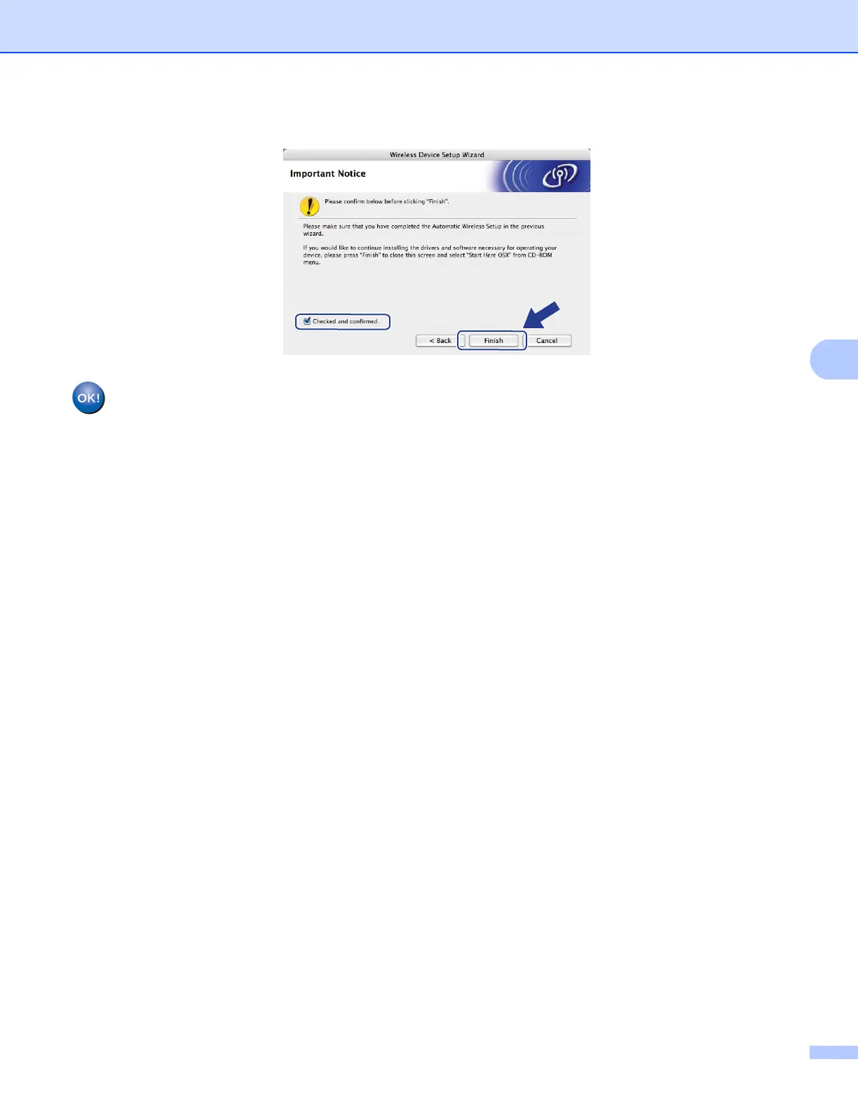 n Check the box after you confirm that you have completed the wireless settings, and then click Finish.
