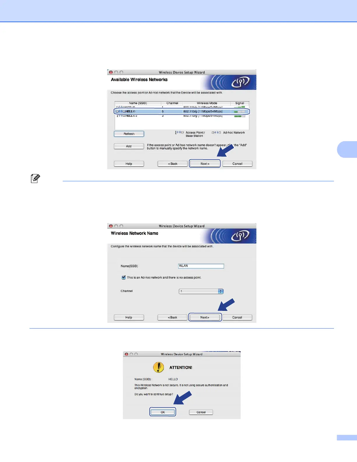 m The wizard will search for wireless networks available from your machine. Choose the Ad-hoc network
