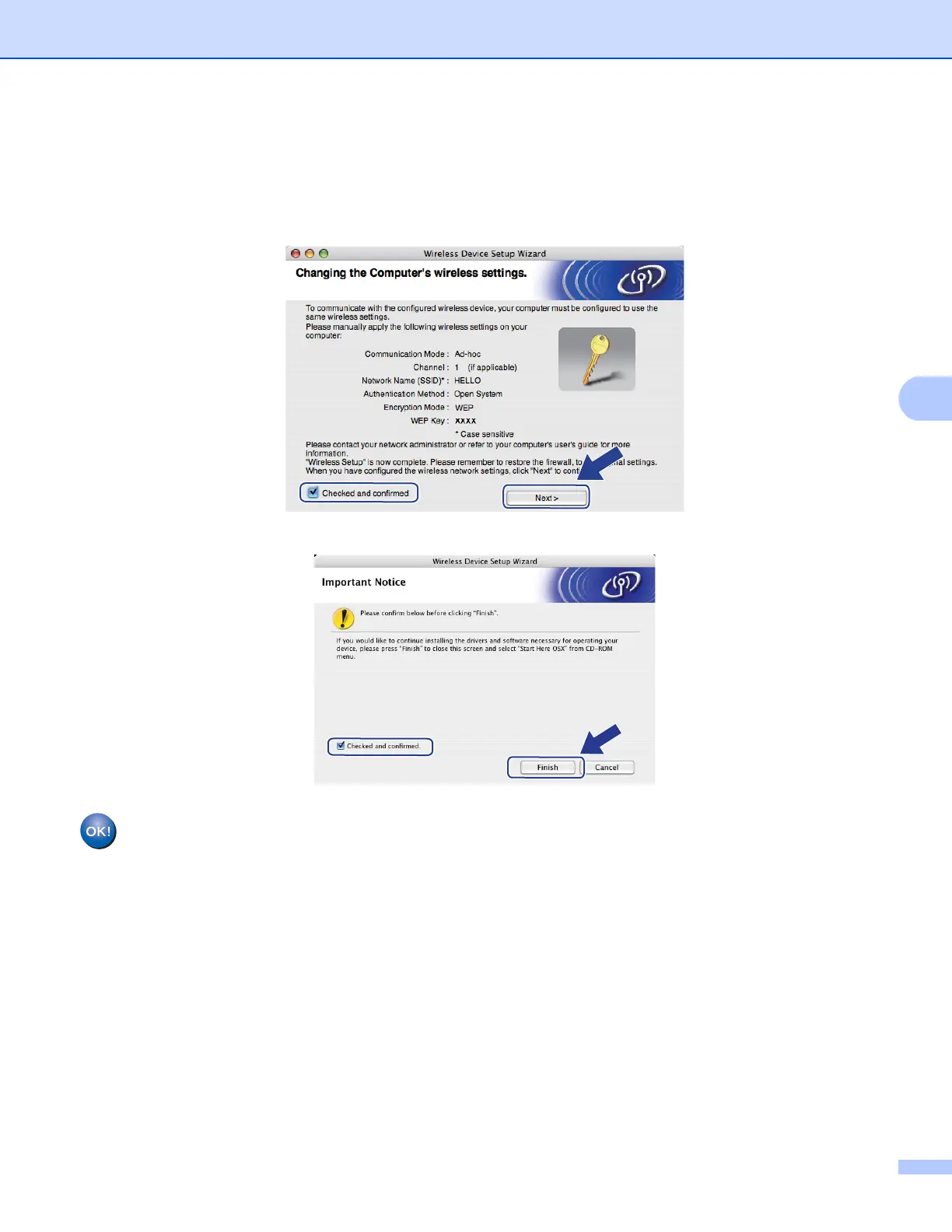 t Check the box after you confirm that you have completed the wireless settings, and then click Finish.