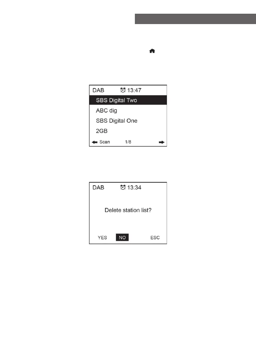 Choose <YES> to delete the existing station list and perform a full scan again.