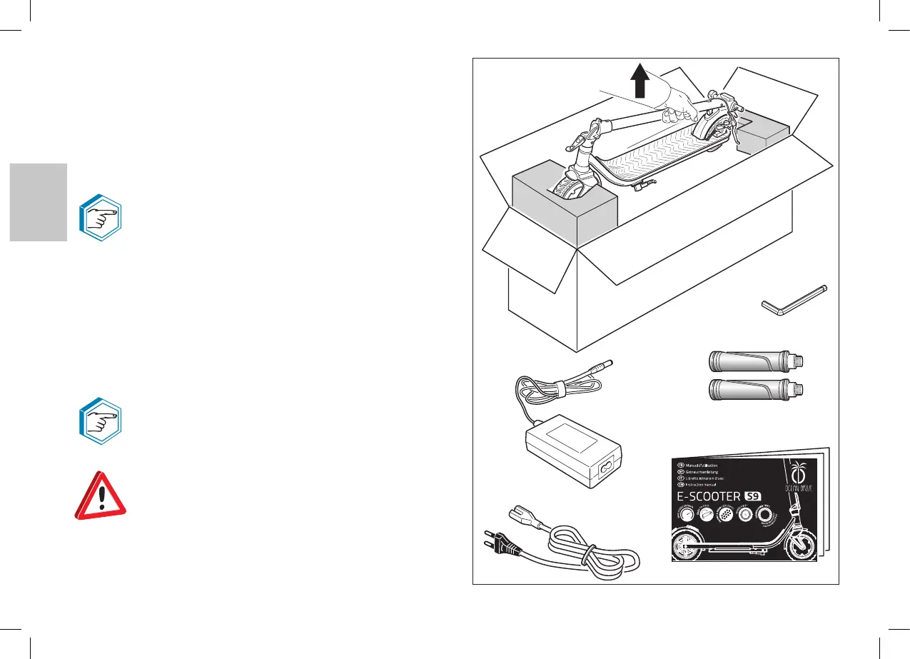 - Une fois l’emballage ouvert, procéder à l’extraction de la trottinette