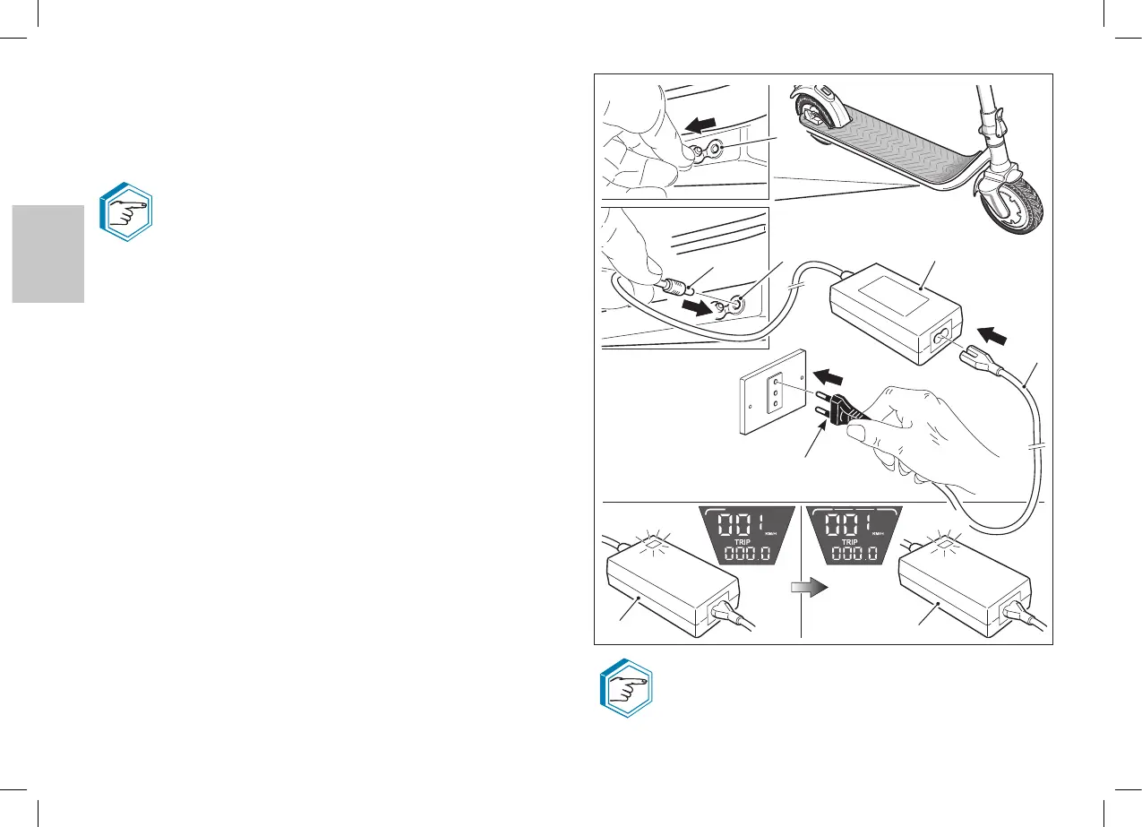 d• Brancher le câble d’alimentation électrique (32) au chargeur de