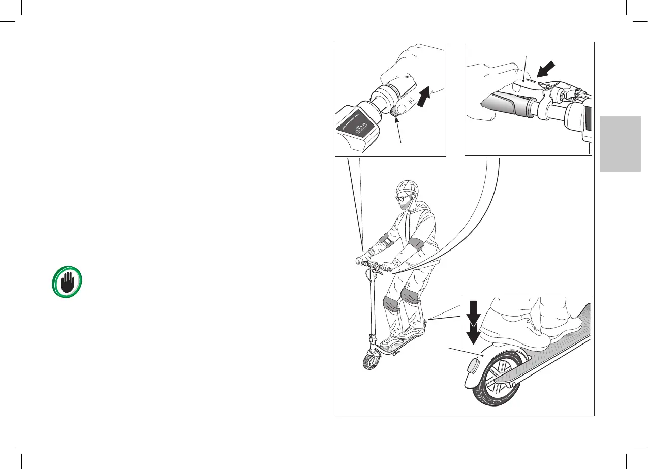 - Pour un freinage plus décisif, tirer le levier de frein (11) et appuyer
