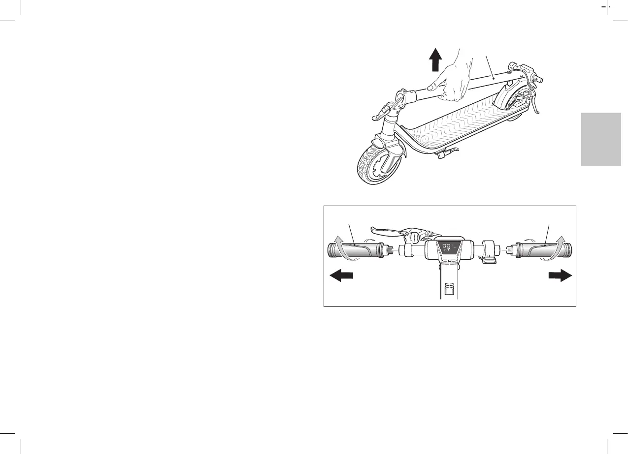 f• Pour soulever la trottinette, tenir le guidon (7) en équilibrant le
