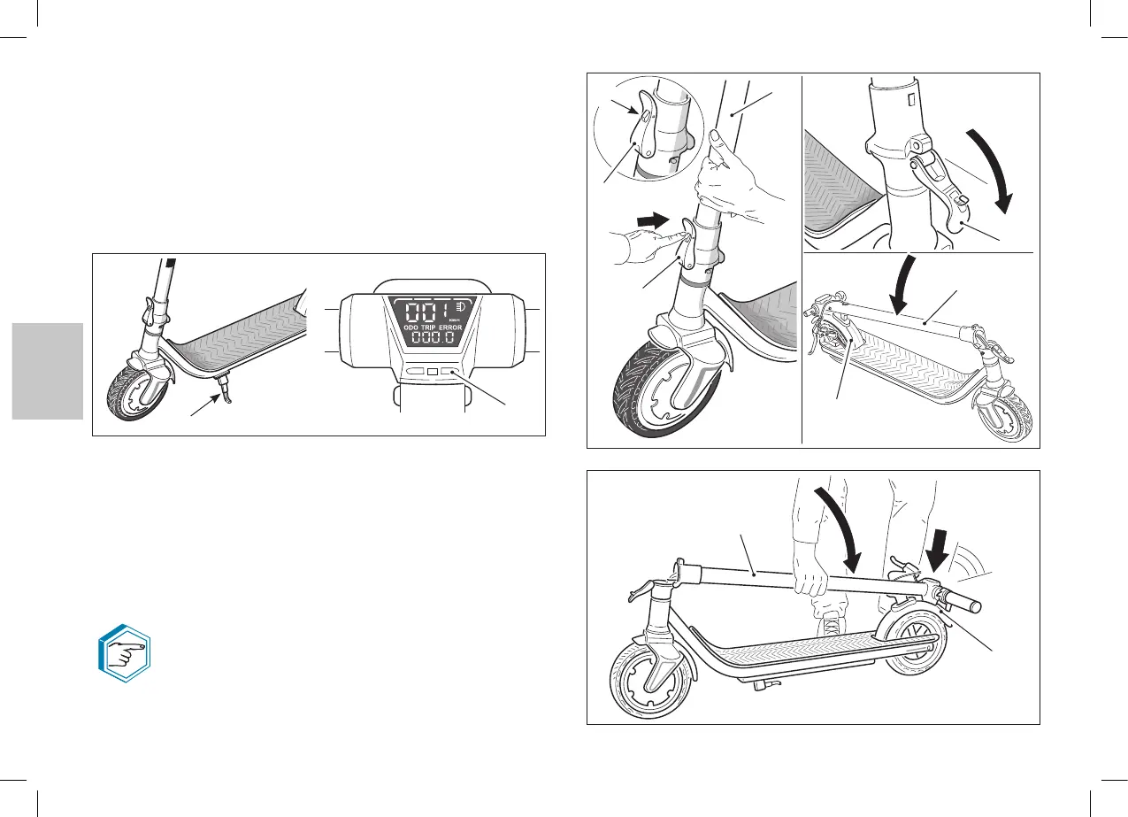 b• Den Roller ausschalten, indem die Taste EIN/AUS (23) gedrückt