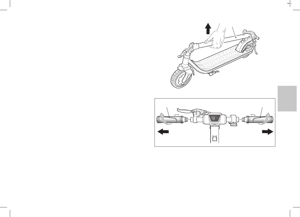 f• Um den Roller anzuheben, die Lenksäule (7) ergreifen, dabei