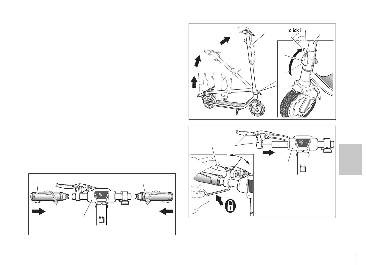 g• Avvitare le due manopole (21) al manubrio (9) come indicato in