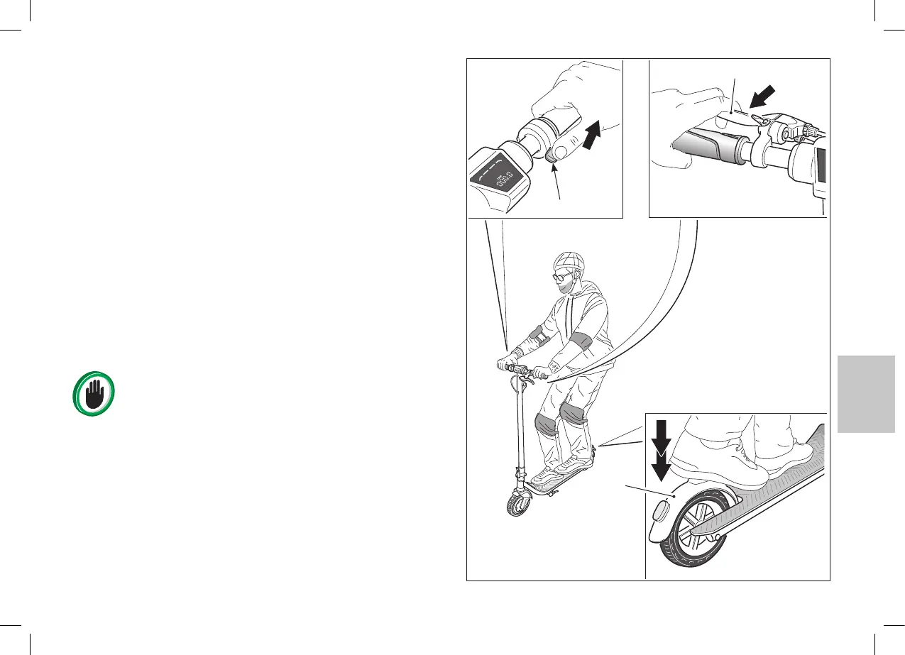 - Per una frenata più decisa tirare la leva freno (11) e premere con