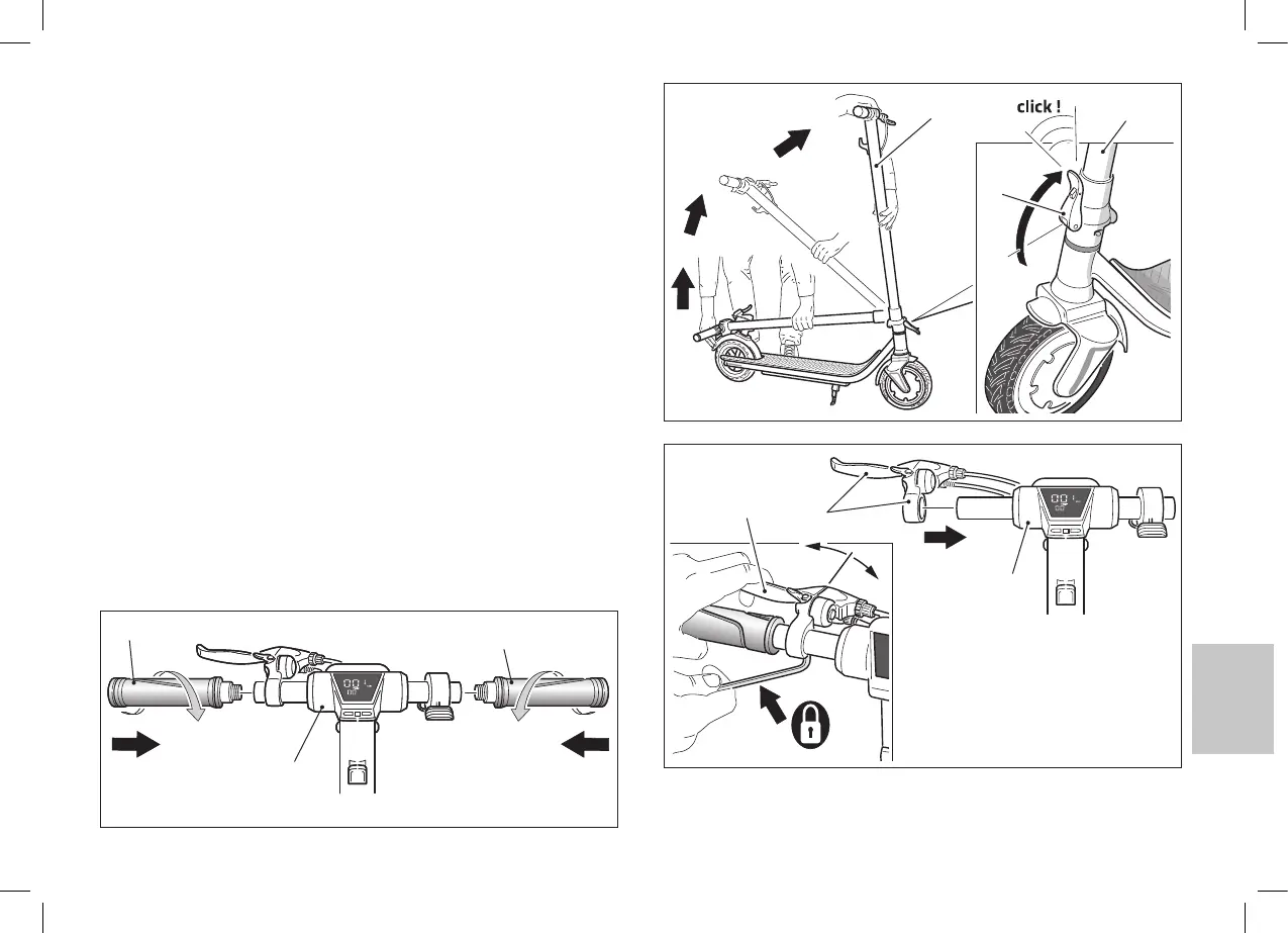 g• Screw the two grips (21) to the handlebars (9) as shown in the