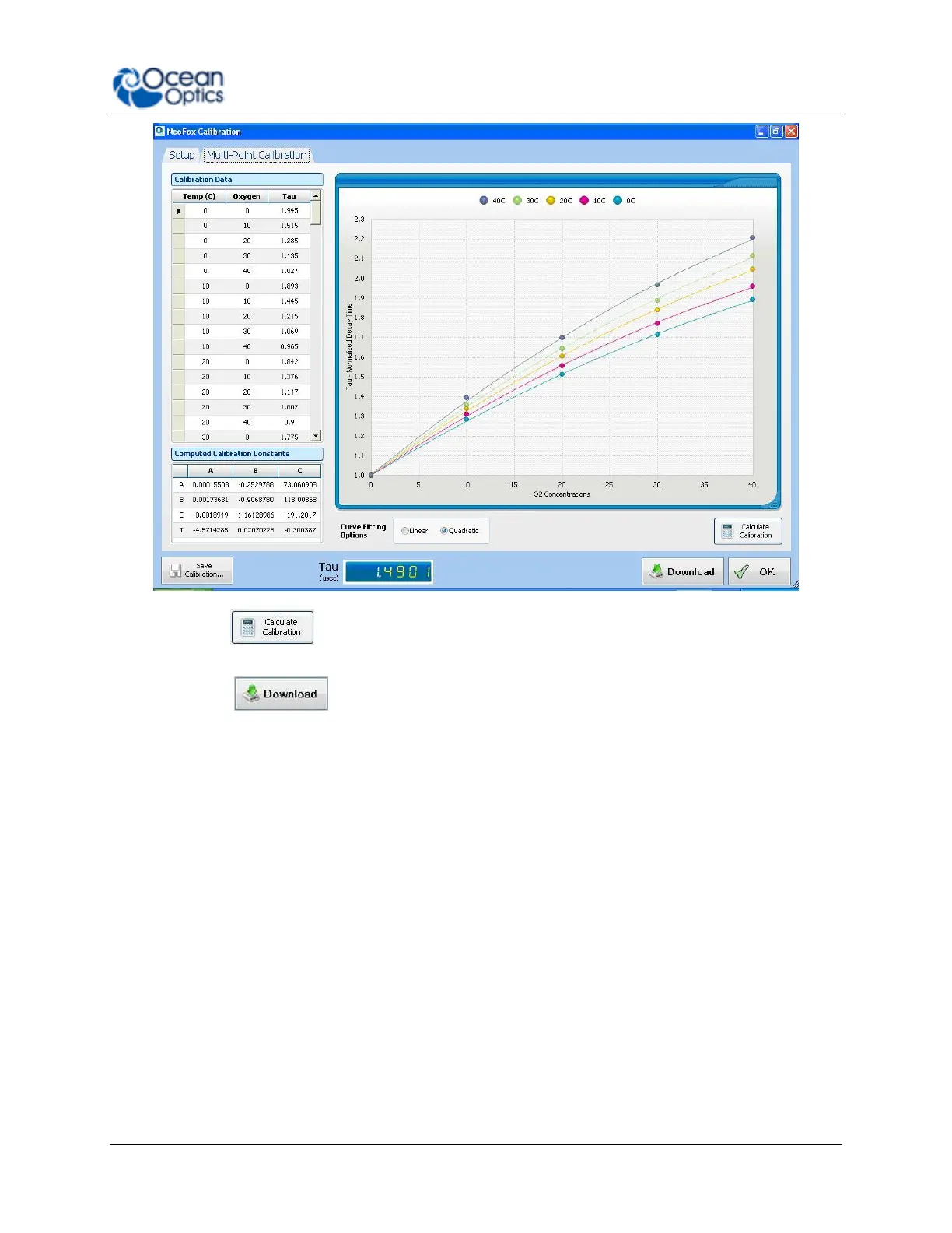 9. Click the button to use the coefficients for oxygen calculation. A Download