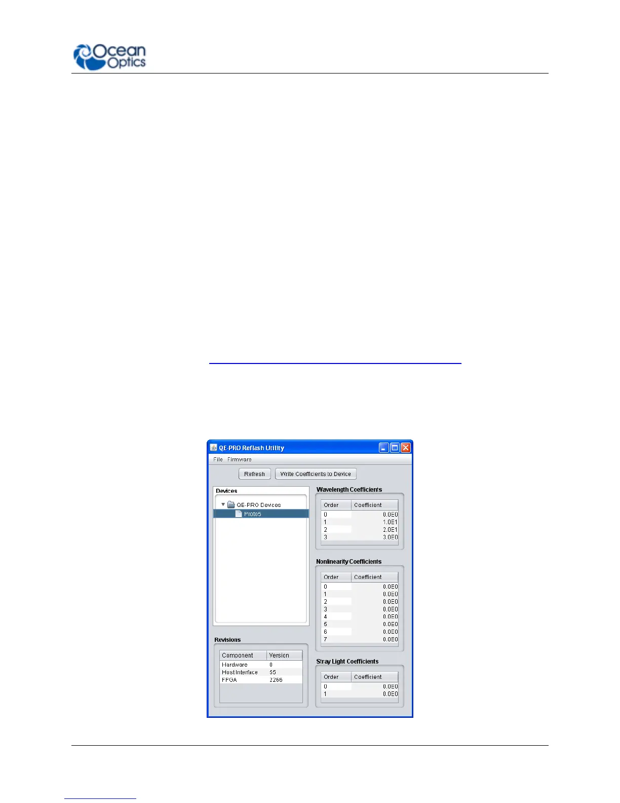 Ocean Optics programs wavelength calibration coefficients unique to each QE Pro onto an EEPROM