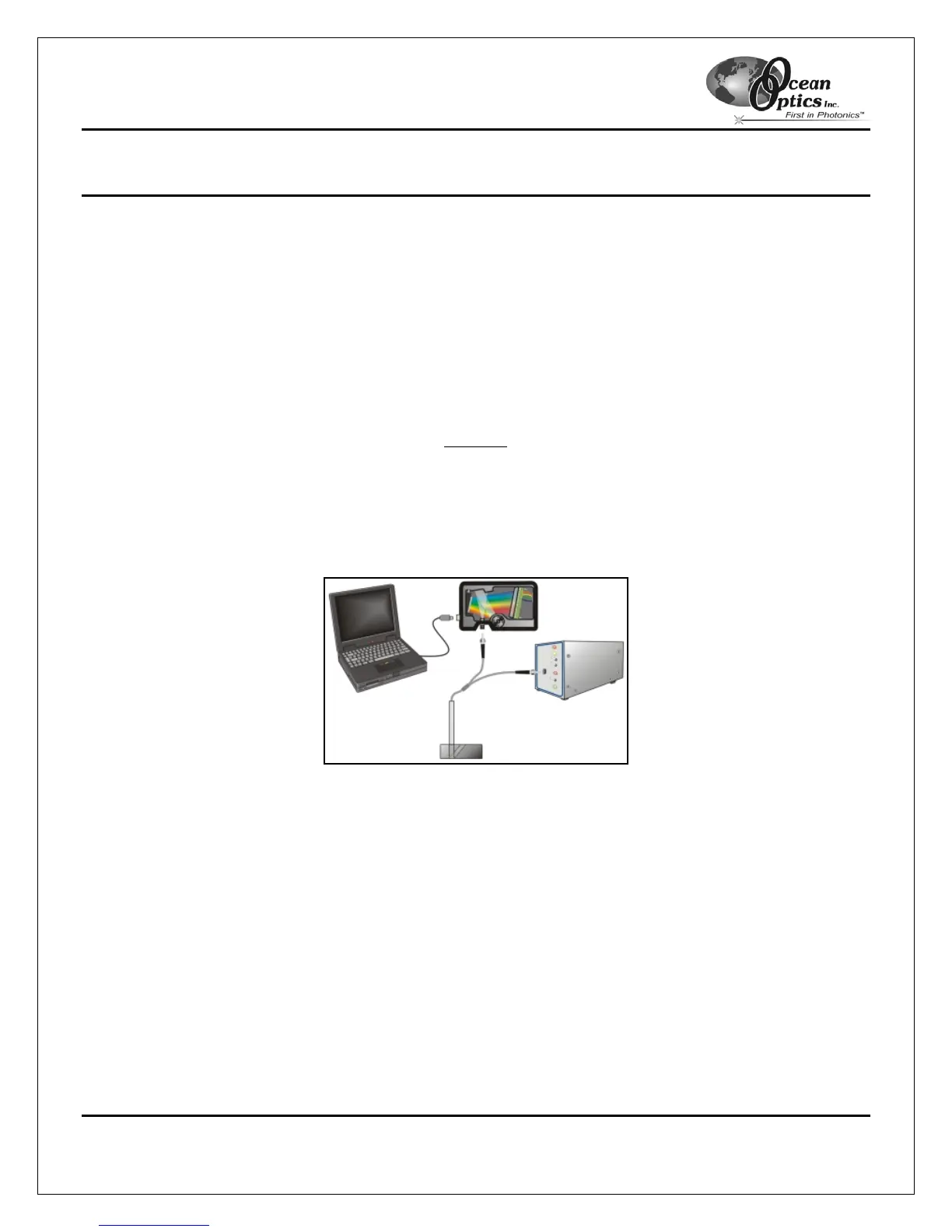 output leg of the reflection probe carries light from the sample to the spectrometer (top center), which is connected to the