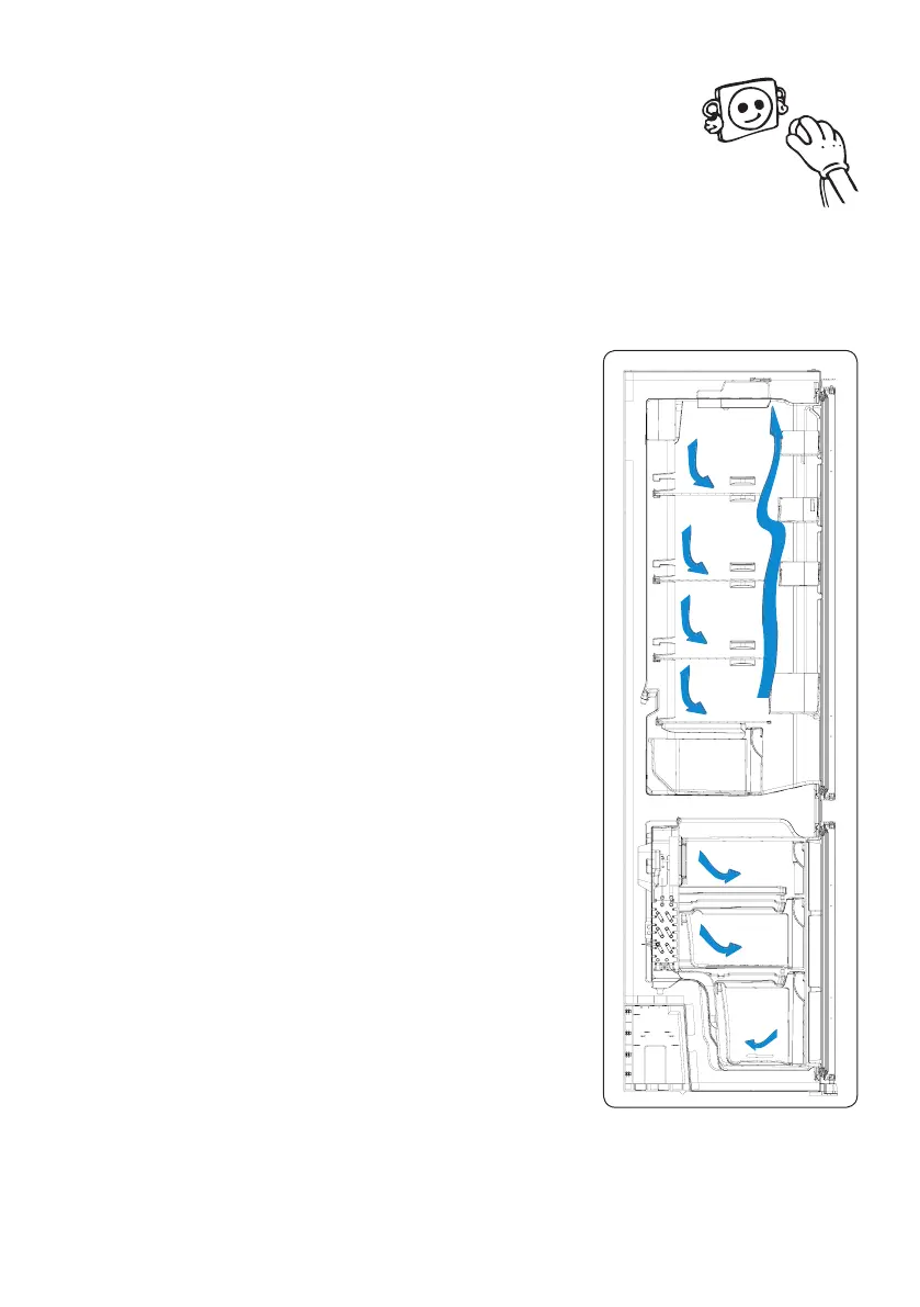 del frigoríco y del congelador, manteniéndolos secos. El aire